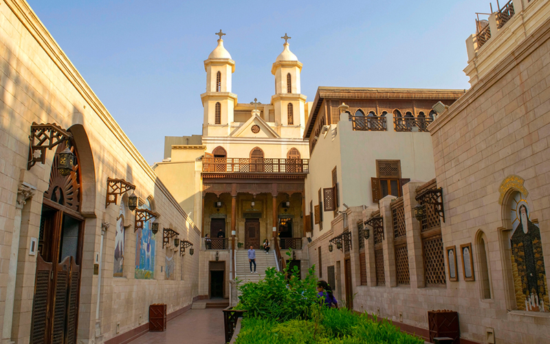 visit Islamic and Christian Cairo Where you can visit the historical mosques, Saladin castle,Alsultan Hassan & Alrefaey mosques,old market,Islamic, El Moez street & Christian sites in Cairo and Churches in Cairo, the Church of Abu-Sergah and St. Barbara, the hanging church, and the old Jewish synagogue – Ben Ezra Synagogue.